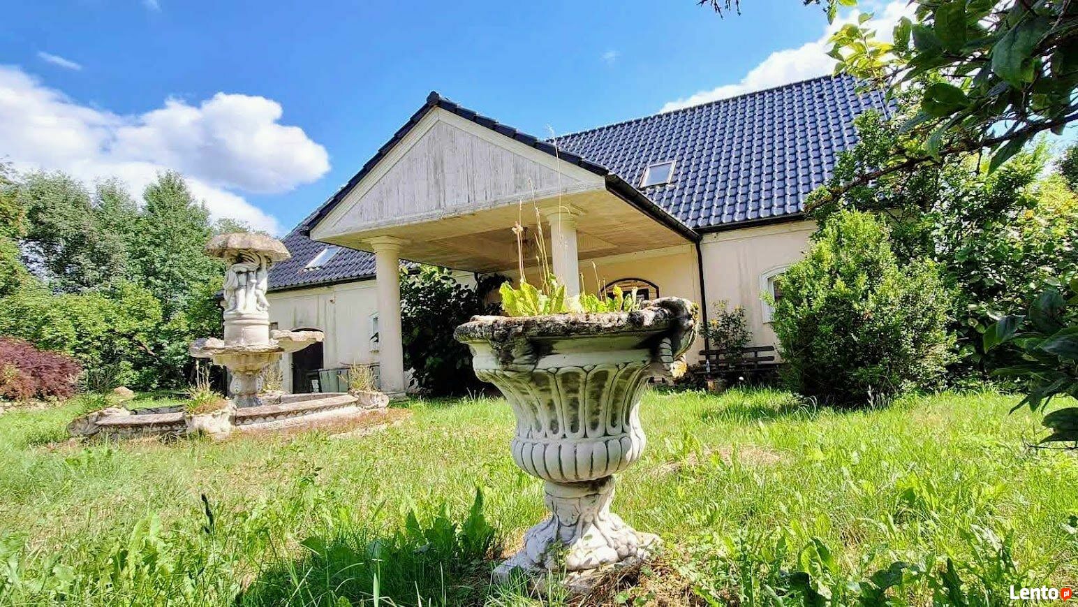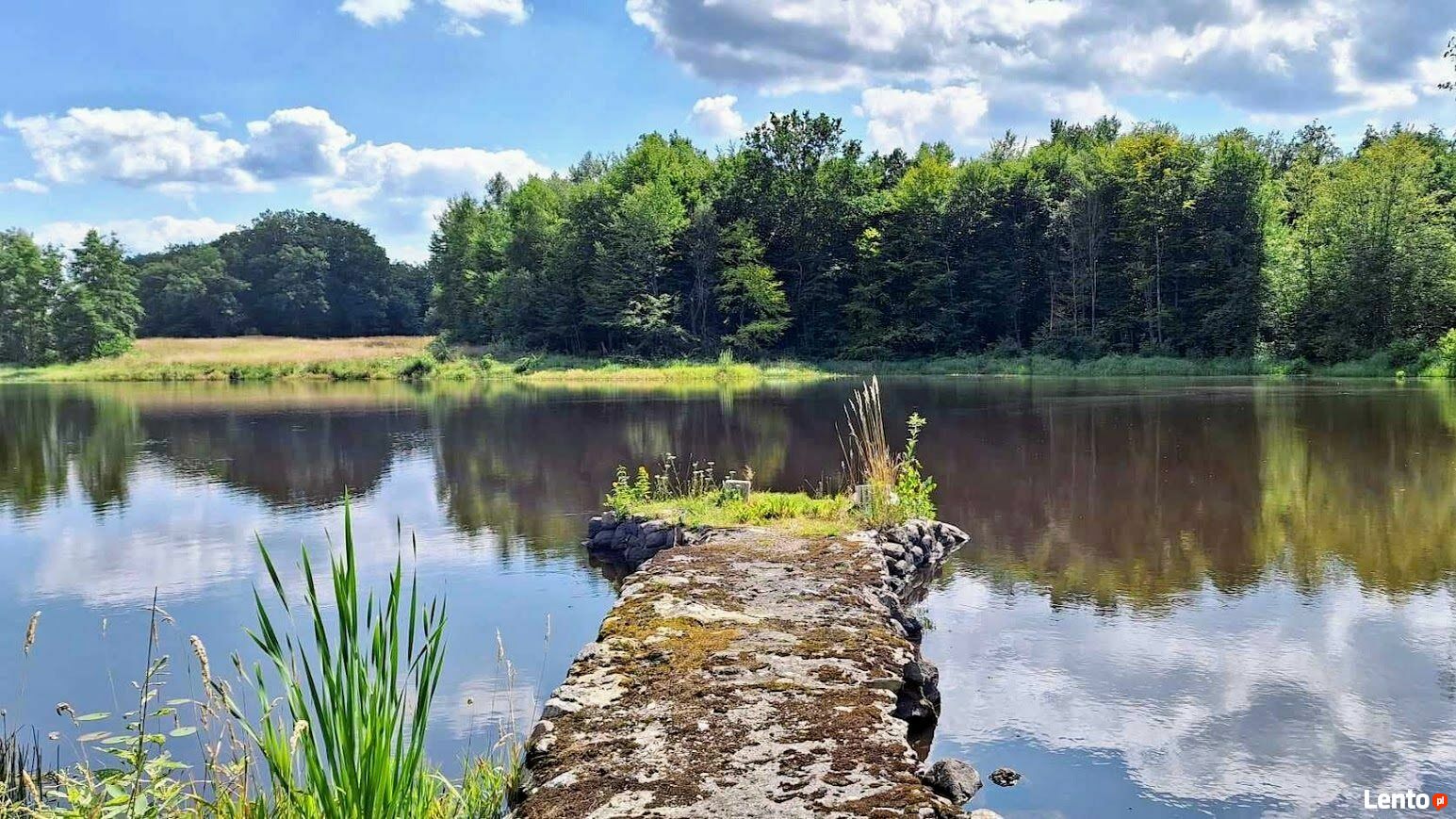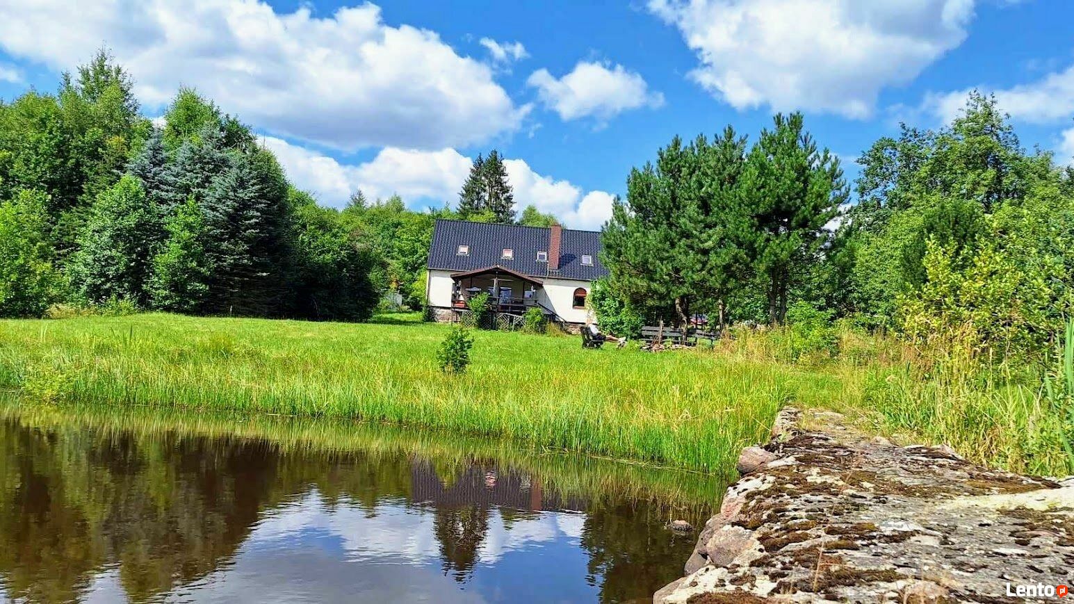Na Sprzedaż Unikalna, Wyjątkowa posiadłość na terenie około 4,5 hektara. Budynek mieszkalny o powierzchni około 300m2. Parter z dużą kuchnią otwartą na Salon z ogromnym kamiennym kominkiem, z wyjściem na taras z widokiem na staw i las. Dodatkowo doża łazienka oraz dwa pokoje. Piętro 4 sypialnie , łazienka, garderoba. Budynek posiada również niezależne , osobne mieszkanie ( 2 pokoje, kuchnia, łazienka ) z osobnym wejściem z boku budynku. Cały teren łącznie ze stawem ogrodzony. Przylegający bezpośrednio do ściany lasu. Brak bezpośrednich sąsiadów.
